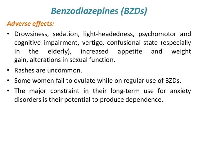 When they re used in high doses or taken with other drugs benzos can cause severe side effects. This paper is a review of the adverse effects of benzodiazepines and concentrates on four areas of particular concern.