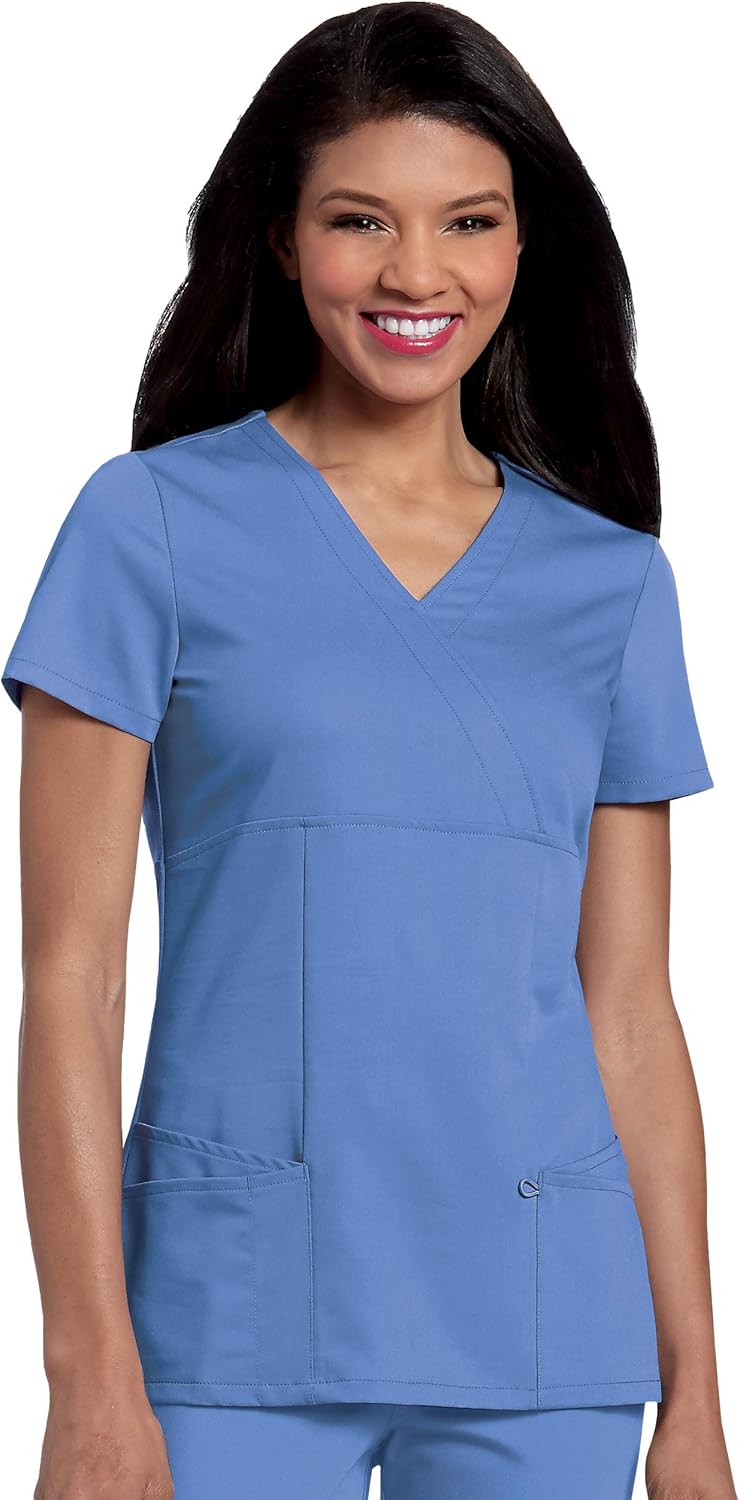 Amazon Com Urbane Women S Silky Soft Ashley 4 Pocket Stretch Mock Wrap Scrub Top Clothing
