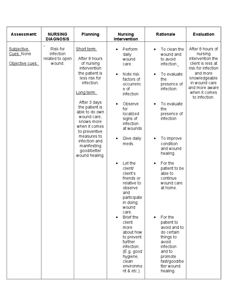 Nursing Care Plan For Infection Wound Infection