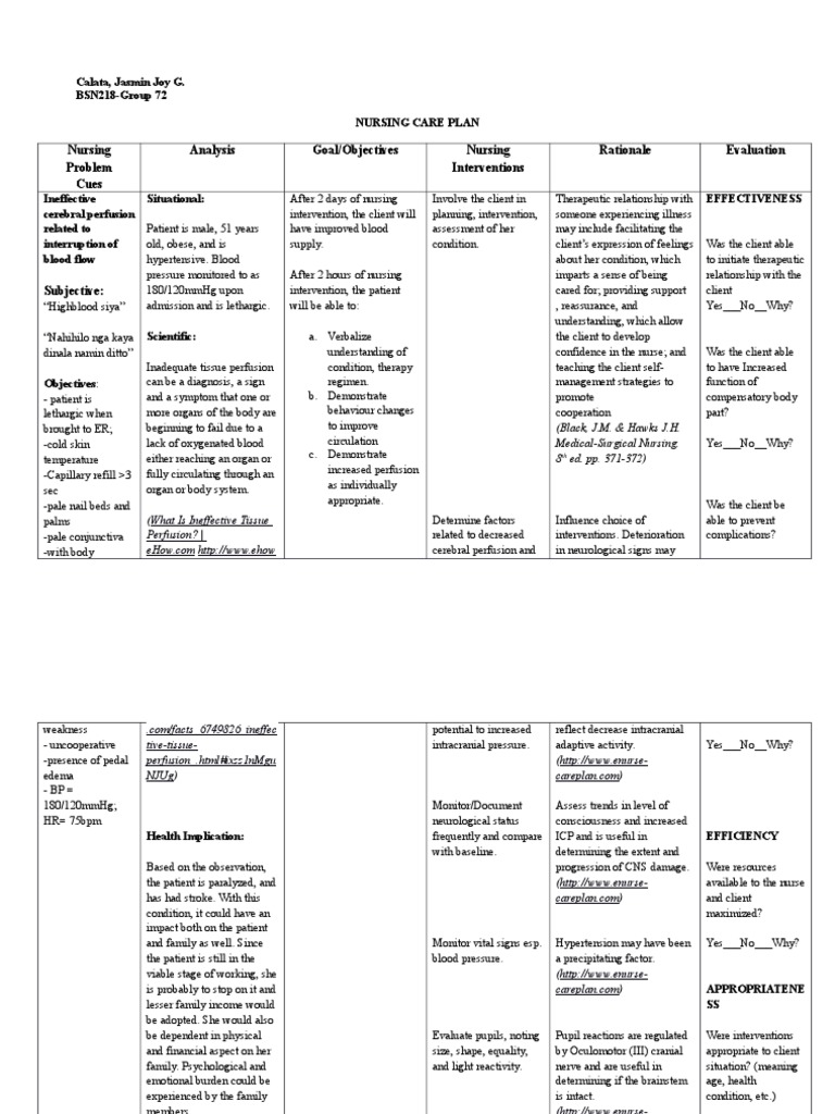 Nursing Care Plans Ineffective Cerebral Tissue Perfusion On239kywxml0