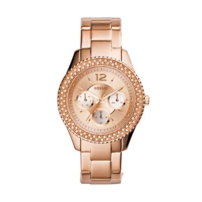 Women S Rose Gold Tone Fossil Stella Multi Function Watch Es3590