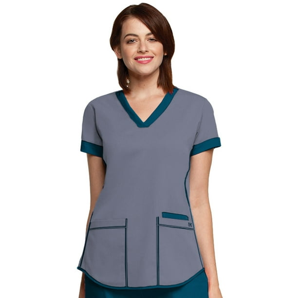 Nrg By Barco Clearance Nrg By Barco Uniforms Women S Contrast Squared V Neck Solid Scrub Top Walmart Com Walmart Com