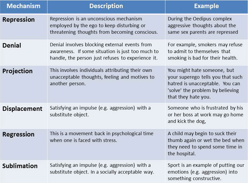 - types of defense mechanisms in psychology