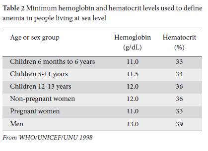 The overall anaemia cut offs have been unchanged since 1968 with the exception that the original age group of children 5 14 years of age was split and a cut off of 5 g l lower was applied to children 5 11 years of age to reflect findings among non iron deficient children in the usa 6. Normal adult hemoglobin values are generally 14 to 18 grams per deciliter for men and 12 to 16 grams per deciliter for women. Normal adult hematocrit values vary among medical practices but are generally between 40 and 52 for men and 35 and 47 for women.